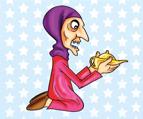 عجوز وجدت الفانوس السحري وعندما فركته وظهر مارد الفانوس طلبت منه أن يعيدها شابة .. فأعادها إلى سن الأربعين .. ولم يعجبها.. فأعادها إلى سن العشرين .. ولم يعجبها ثم أعادها إلى سن سنتين .. فأصيبت بالتهاب السحايا وماتت .