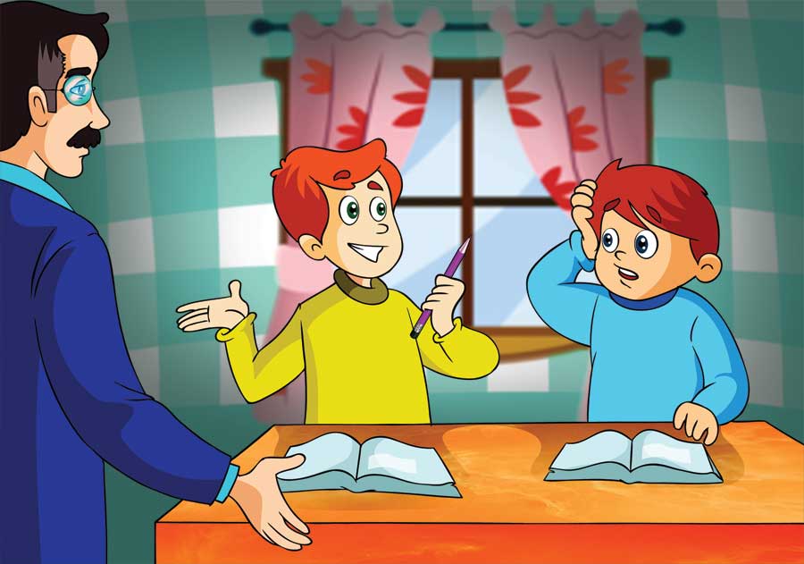 ودائما تفعلها بي وتدَّعي بأن أحداً قد أخذها منك ولم يرجعها لك فقررت عدم إعطائك أي شيء , وعند انتهاء الدوام شاهد زيد زميله محمد وهو ذاهب للبيت فقال له: هل سمعت ما يتكلم به مهدي عليك ؟ فتعجب محمد , وماذا يقول ؟ انه يقول: إنه رآك تبكي في الدرس لأنك لم تجلب أقلامك وهو قد ساعدك , وهو الآن يتفاخر بمساعدته لك بين التلاميذ , فحزن محمد من هذا الكلام وقال لزيد إن مهدي طالب متعجرف ويرى إنه أفضل التلاميذ , شكرا لأنك قلت لي غدا سأوبخه أمام التلاميذ وعند عودة محمد للبيت قص الحدث لوالده وقال له غدا سأقوم بتوبيخه أمام التلاميذ ليعرف قدر نفسه فقال له والده : لا تغضب يا بني غدا اذهب إلى مهدي وتأكد منه على انفراد وليس أمام التلاميذ ولا تستعجل في الحكم , وفي اليوم التالي رأى محمد زميله مهدي واقفاً مع زملائه وهم يضحكون