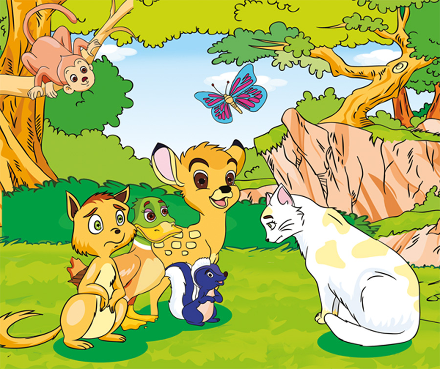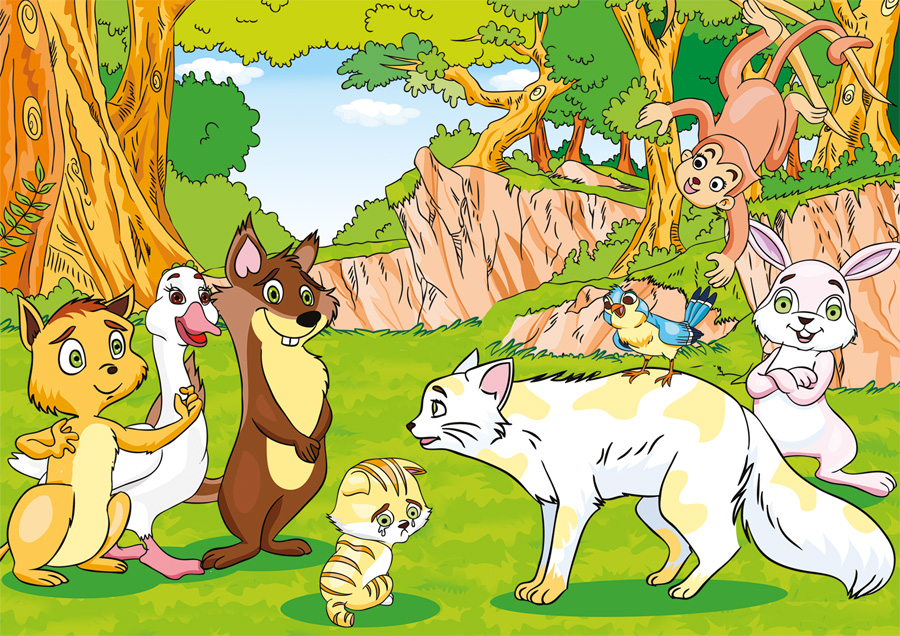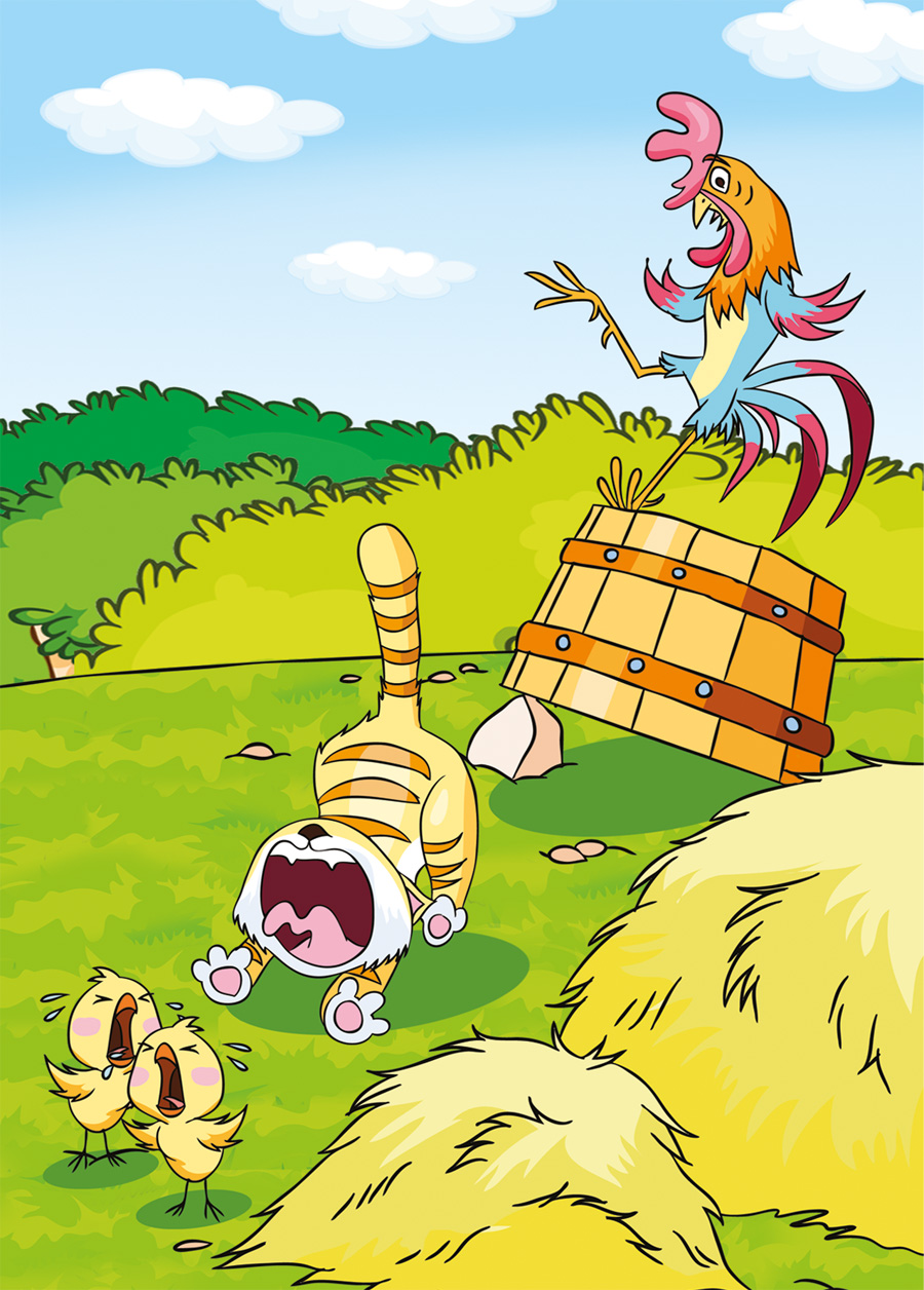 تحكي القصة عن قط صغير مشاكس يعيش مع والدته في الحقل وكان هذا القط يقوم يوميا بإزعاج الحيوانات , وذات يوم قام القط بنصب كمين لأفراخ الدجاج فأختبأ داخل القفص وعند خروجهن صرخ في وجهها عالياً فارتعبت الفراخ وأخذت تبكي من شدة الخوف.