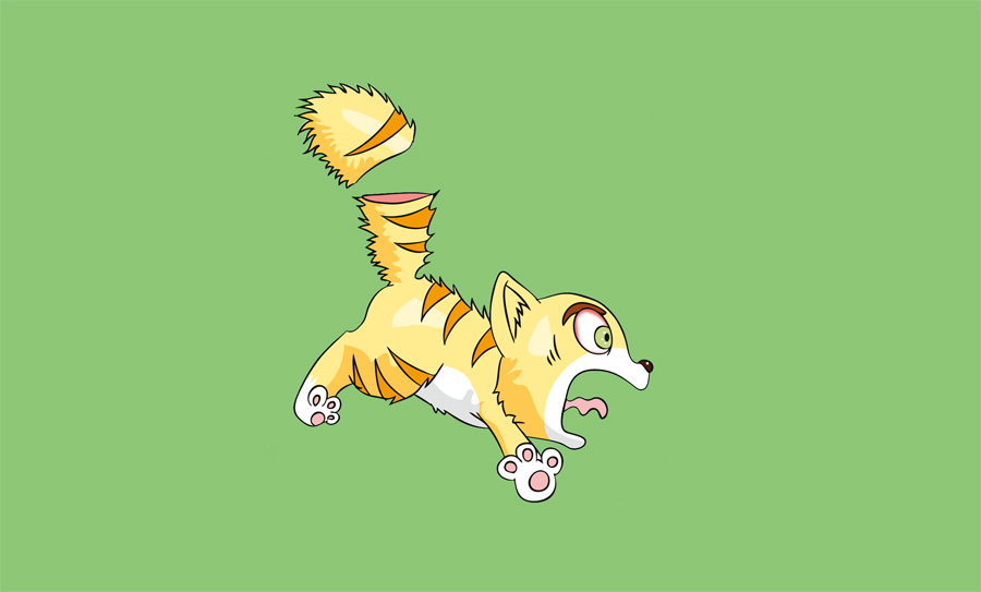 فنظر القط له وهو يجري متناسيا المصيدة فوقع بها القط وأخذ يصرخ ويبكي بصوت عالٍ لان المصيدة قطعت ذيله إلى نصفين .