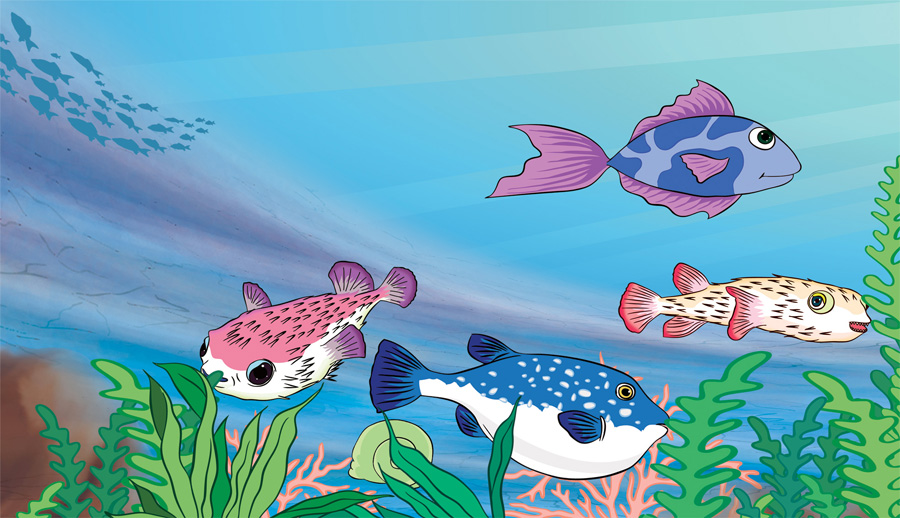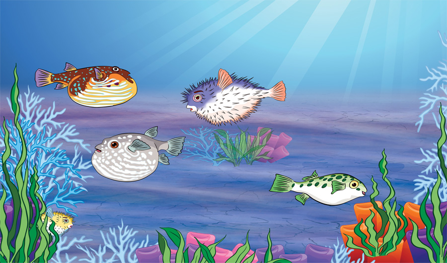 السمكة الذكية : أهلاً بكِ عزيزتي أمونة وبأصدقائك الصغار، سآخذكم بعيدا إلى قاع البحر لنتعرف معاً على سمكة البالون المدهشة التي تعيش في المياه البطيئة الجريان ولها العديد من الأسماء المستمدة من شكلها مثل سمكة الفقاعة أو سمكة البخاخ، ولكونها سمكة بطيئة الحركة فهذا يجعلها فريسة سهلة الإمساك من قبل الكائنات البحرية المفترسة والتي تتغذى على الأسماك الصغيرة.