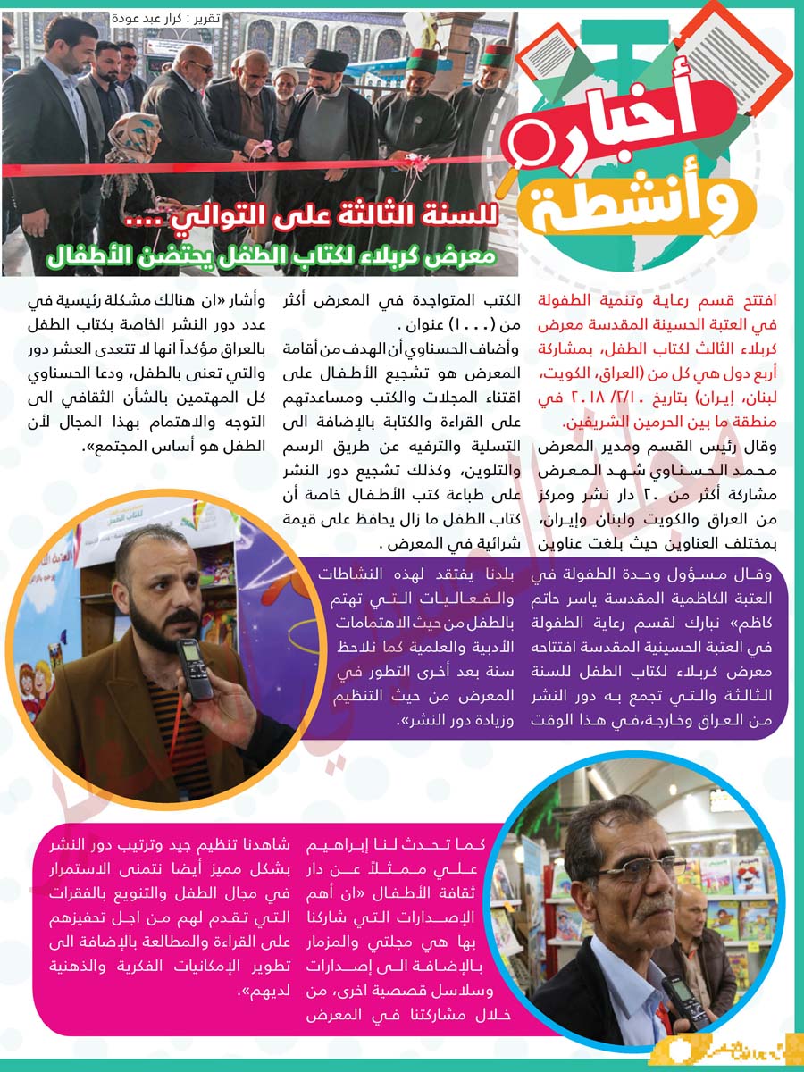 للسنة الثالثة على التوالي... معرض كربلاء لكتاب الطفل يحتضن الاطفال.